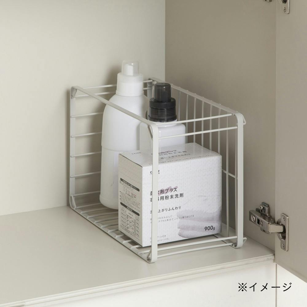 ●よこにしても使える。●たてよこ使える。洗面下収納ボックス小と組み合わせて使える。