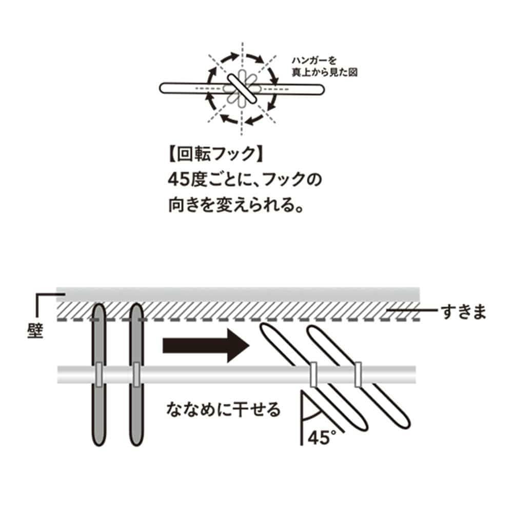 ●フックの角度が45度に変えられるので、狭いスペースでも壁に当たりにくくなっています。●ランジェリーの肩ひもやスカートのひもが掛けられるひも掛け付き。●肩幅約41cmのワイドタイプ。
