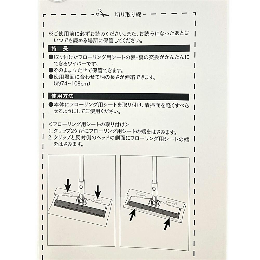 ●取り付けたフローリング用シートの表・裏の交換がかんたんにできるワイパーです。●そのまま立たせて保管できます。●使用場面に合わせて柄の長さが収縮できます。(約74~108cm)