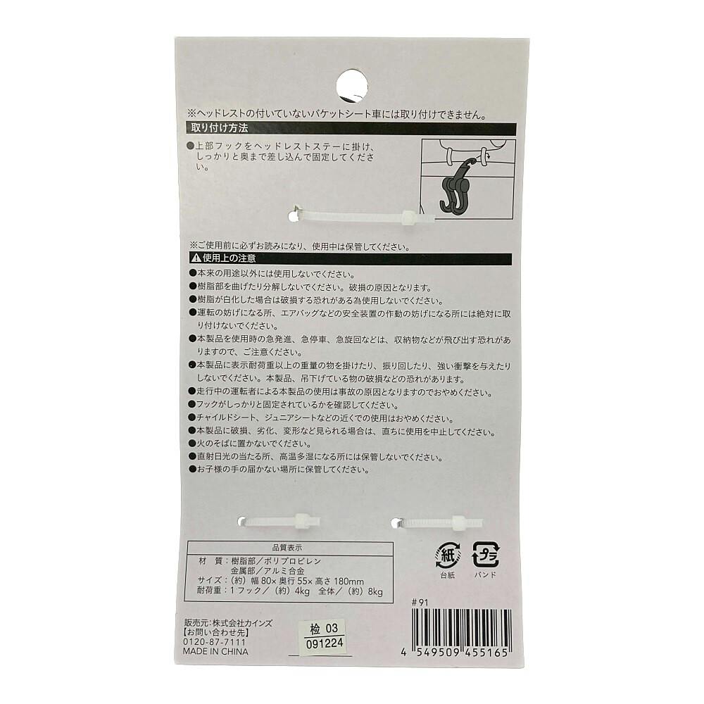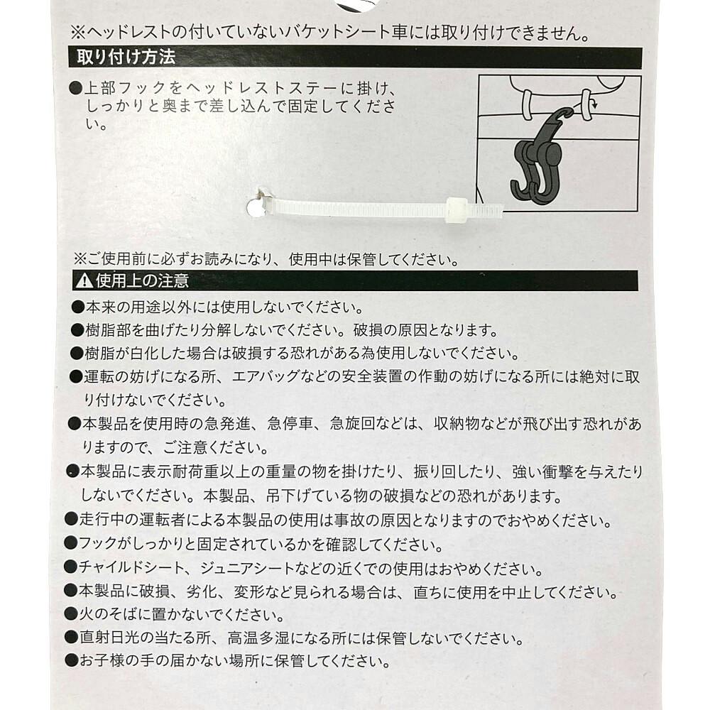 上部フックをヘッドレストステーに掛け、しっかりと奥まで差し込んで固定してください。