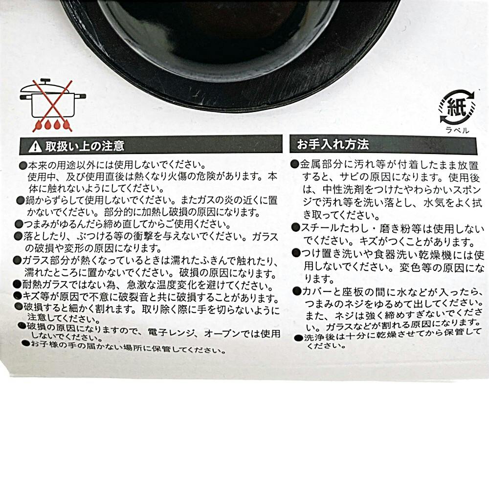 ●本来の用途以外でのご使用はおやめください。使用中、及び使用直後は熱くなり火傷の危険があります。触れないようにしてください。 ●鍋からずらして使用しないでください。またガスの炎の近くに置かないでください。部分的に加熱し変形・破損の原因になります。