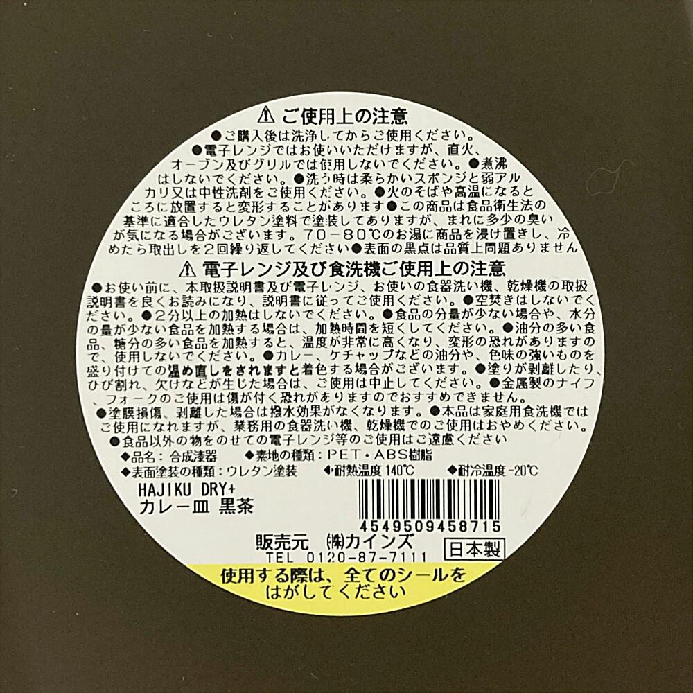 レンジで使えるHAJIKUDRY+ カレー皿 黒茶色