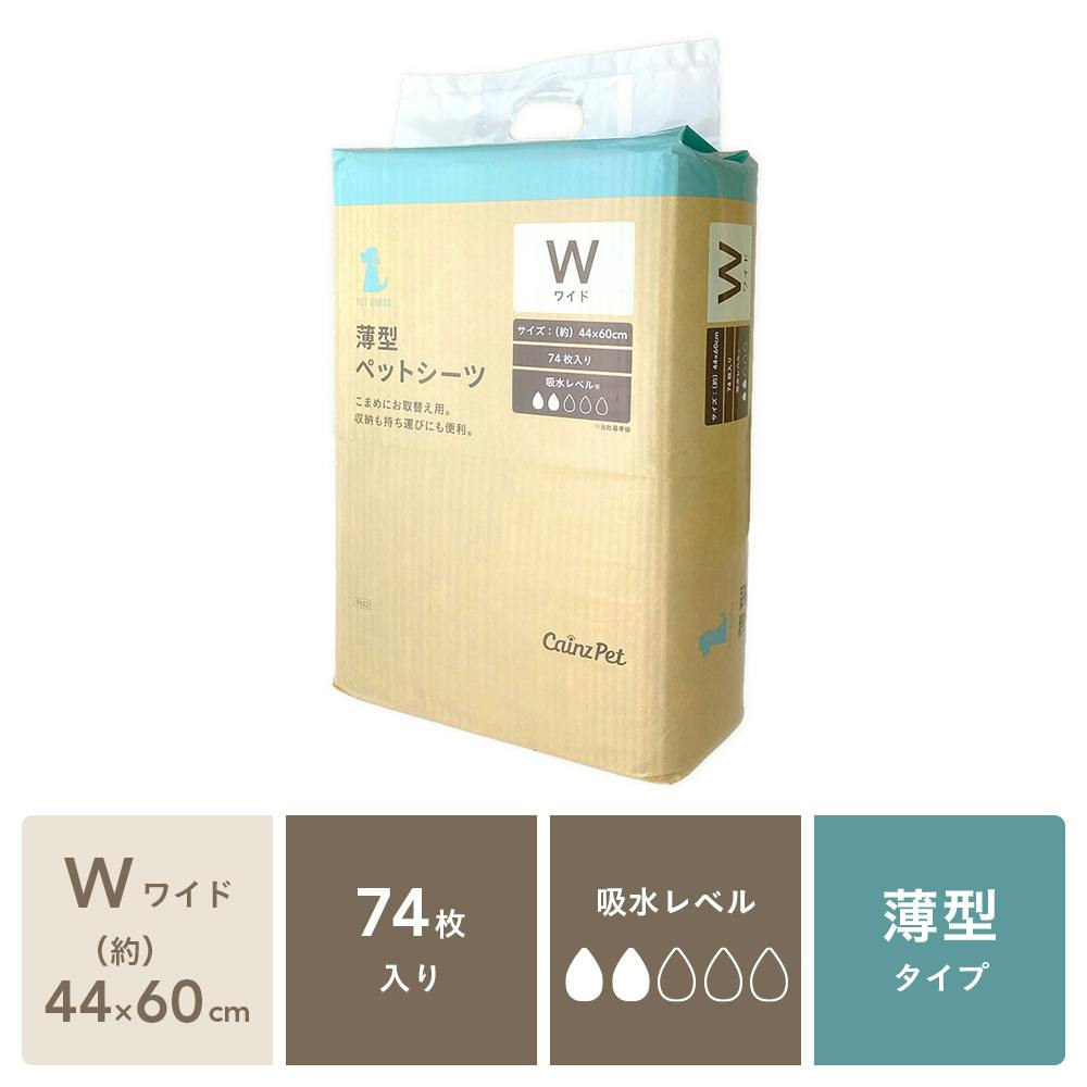【ケース販売】カインズ 薄型ペットシーツ ワイド 74枚4個入 犬用 小型犬約1回分おしっこ吸収 圧縮コンパクト包装 しっかり吸収
