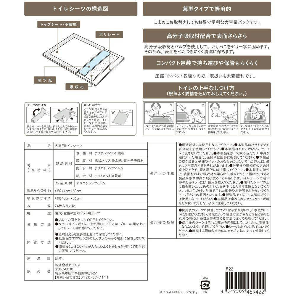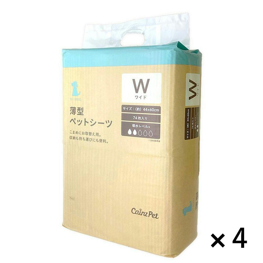 • 【ケース販売】カインズ 薄型ペットシーツ ワイド 74枚4個入 犬用 小型犬約1回分おしっこ吸収 圧縮コンパクト包装 しっかり吸収