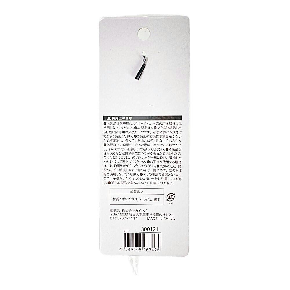 ●本製品は猫専用のおもちゃです。本来の用途以外には使用しないでください。●本製品は交換できる伸縮猫じゃらし(別売)専用の交換パーツです。必ず本体に取り付けてからご使用ください。