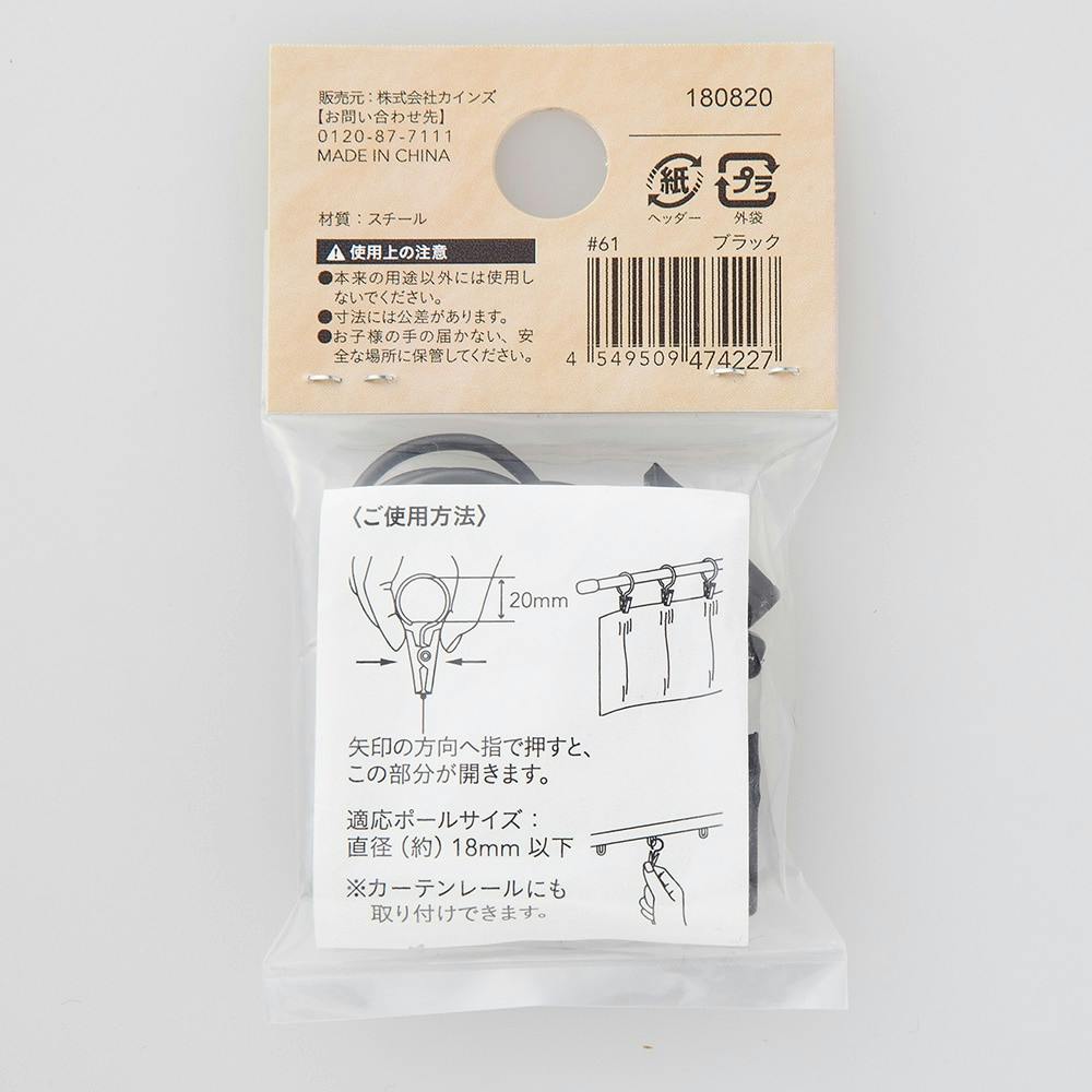 リングクリップ S 内径20mm ブラック 6個入