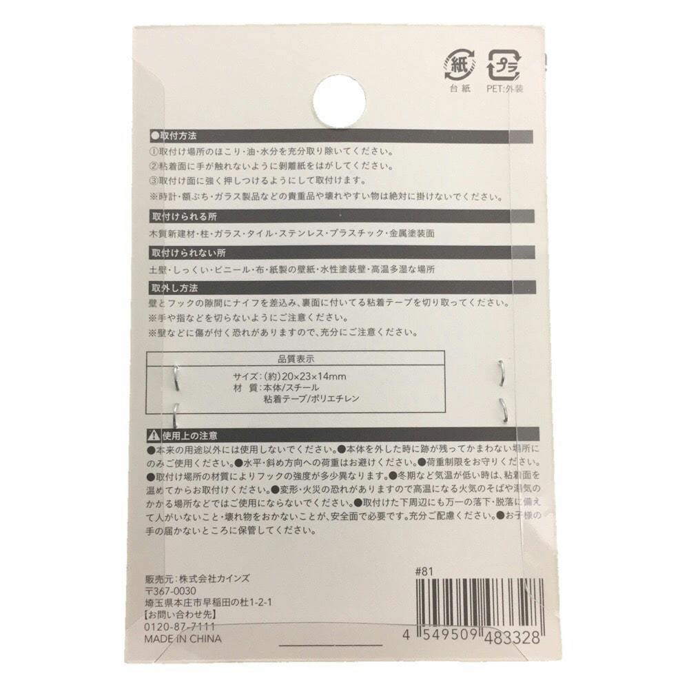 ●本来の用途以外には使用しないでください。●本体を外した時に跡が残ってかまわない場所にのみご使用ください。●水平・斜め方向への荷重はお避けください。●荷重制限をお守りください。●取付け場所の材質によりフックの強度が多少異なります。