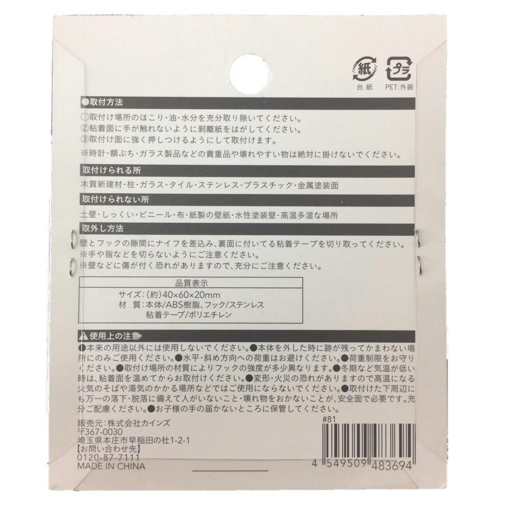 ●本体/ABS樹脂 ●フック/ステンレス ●粘着テープ/ポリエチレン