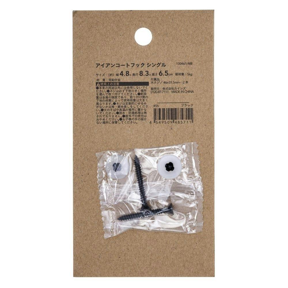 カインズ Kumimoku アイアンコートフック シングル ブラック