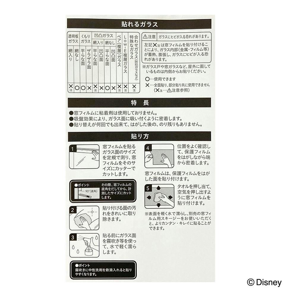 ●カインズでしか買えないディズニー窓フィルム ●粘着剤を使っていないので、簡単に貼る事が出来ます ●吸盤効果により、ガラス面に吸い付くように密着します