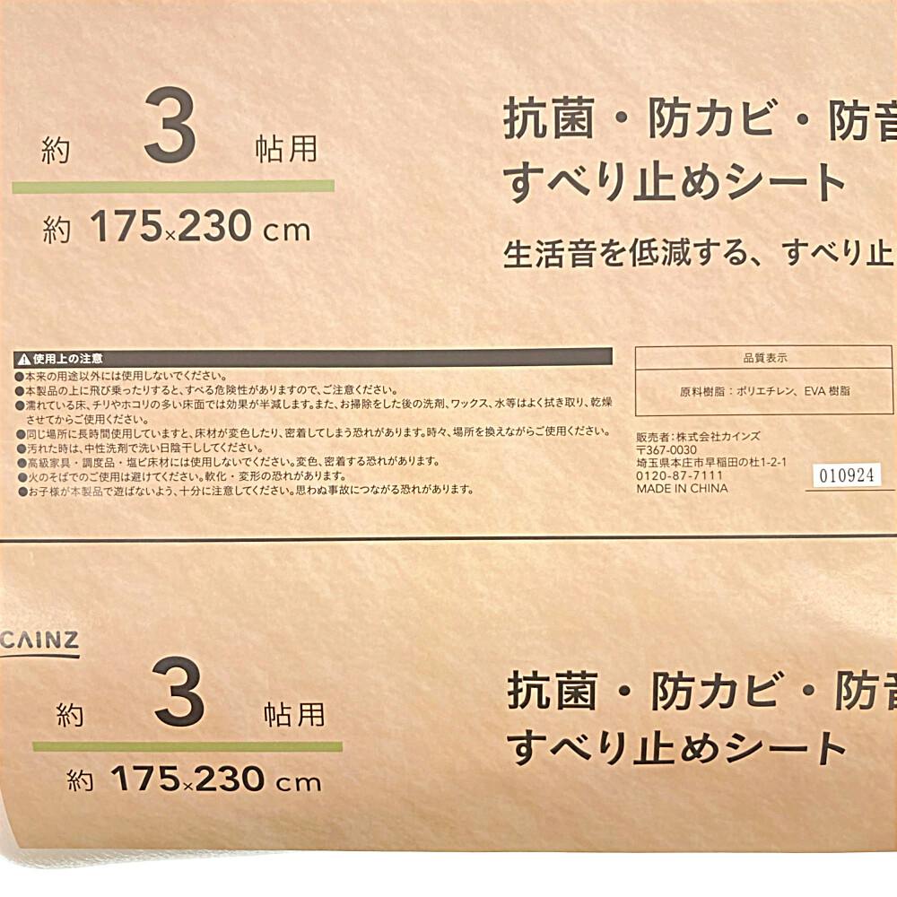 抗菌・防カビ・防音すべりどめシート 3帖用 175×230cm