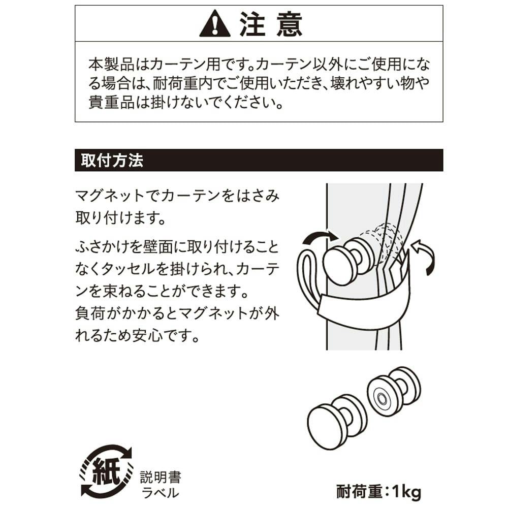 ●マグネットでカーテンをはさみ取り付けます。●ふさかけを壁面に取り付けることなくタッセルを掛けられ、カーテンを束ねることができます。●負荷がかかるとマグネットが外れるため安心です。