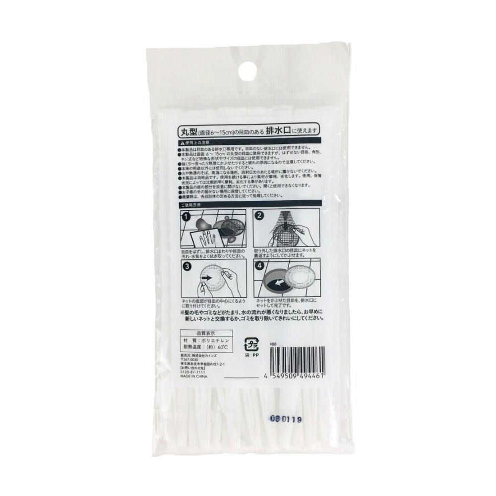 ①目皿をはずし、排水溝まわりや目皿の汚れ、水気をよく拭き取ってください。②取り外した排水口の目皿にネットを裏返すようにしてかぶせます。③ネットの底部が目皿の中心にくるように取り付けてください。④ネットを被せた目皿を、排水口にセットして完了です。