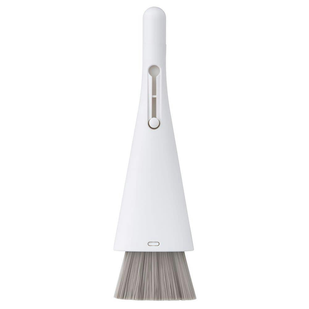 ●食卓・オフィスの机上・サッシなどのちょっとしたお掃除に。●ブラシ部分が収納できる卓上タイプのほうきです。●保管に便利な自立式です。スリムなので卓上においても邪魔になりません。(ブラシの長さは約4cm程です。)