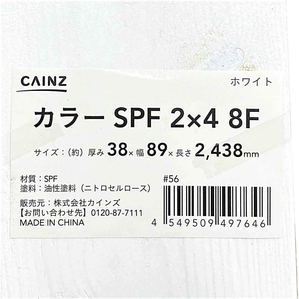 カインズ カラーSPF材 ホワイト 2×4 8F