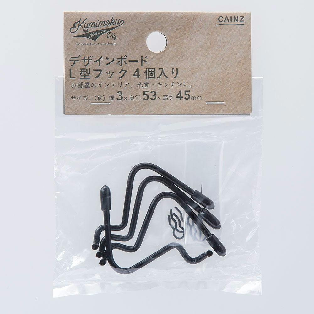 カインズ Kumimoku デザインボード L型フック 4個入り ブラック