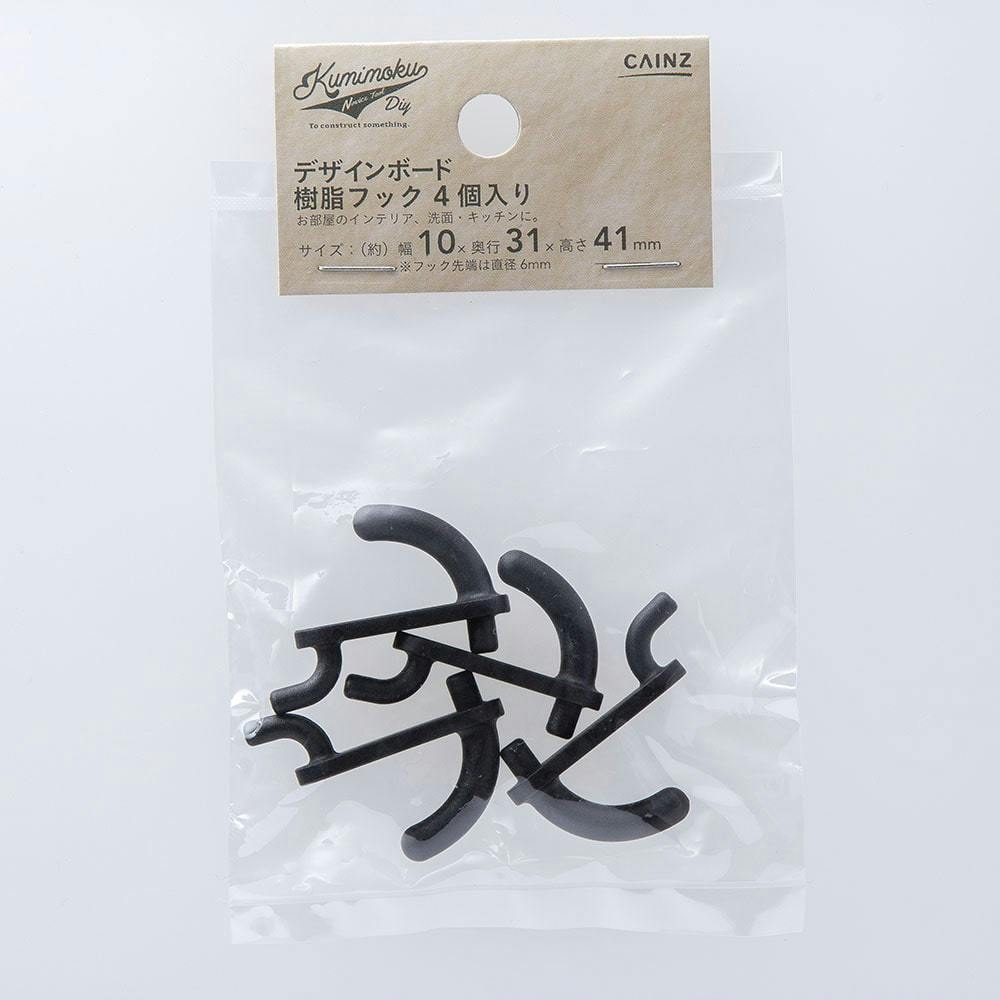 Kumimoku デザインボード 樹脂フック ブラック 4個入り