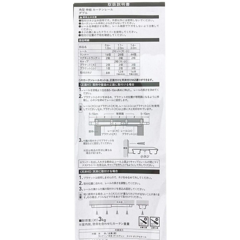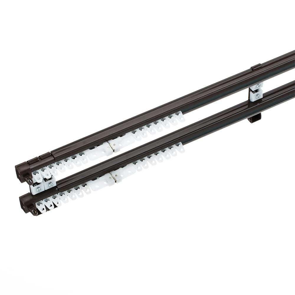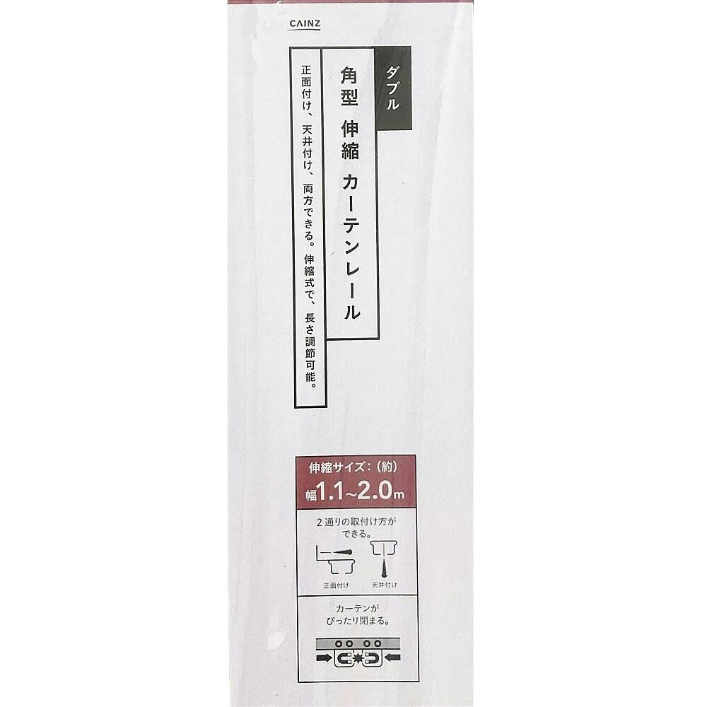 角型伸縮カーテンレール ダブル ブラウン 2m