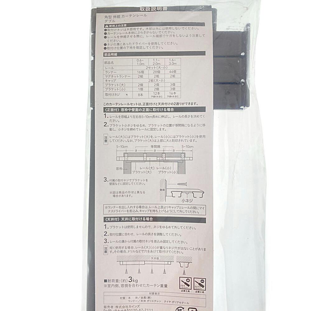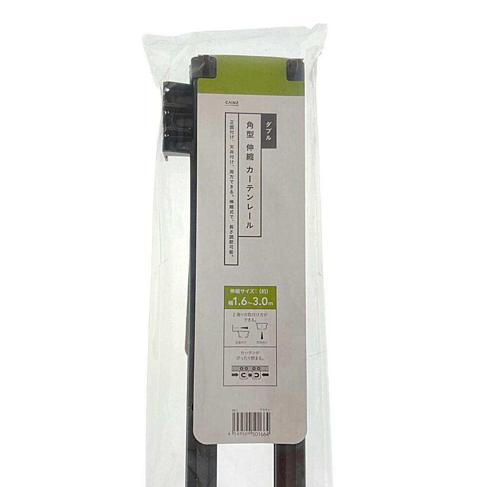 角型伸縮カーテンレール ダブル ブラウン 3m