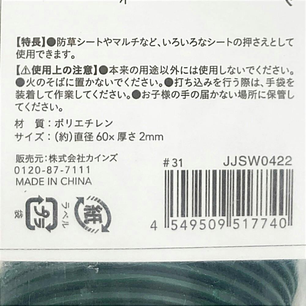 カインズ 押さえ グリーン 60mm 3穴 50個