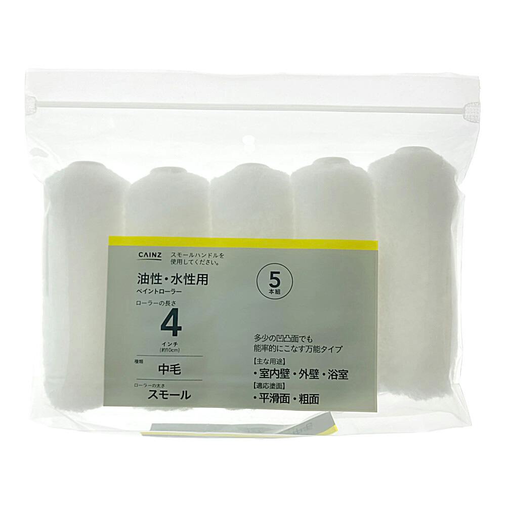 カインズ ペイントローラー 油性・水性用 中毛 スモール 4インチ スペア 5本組