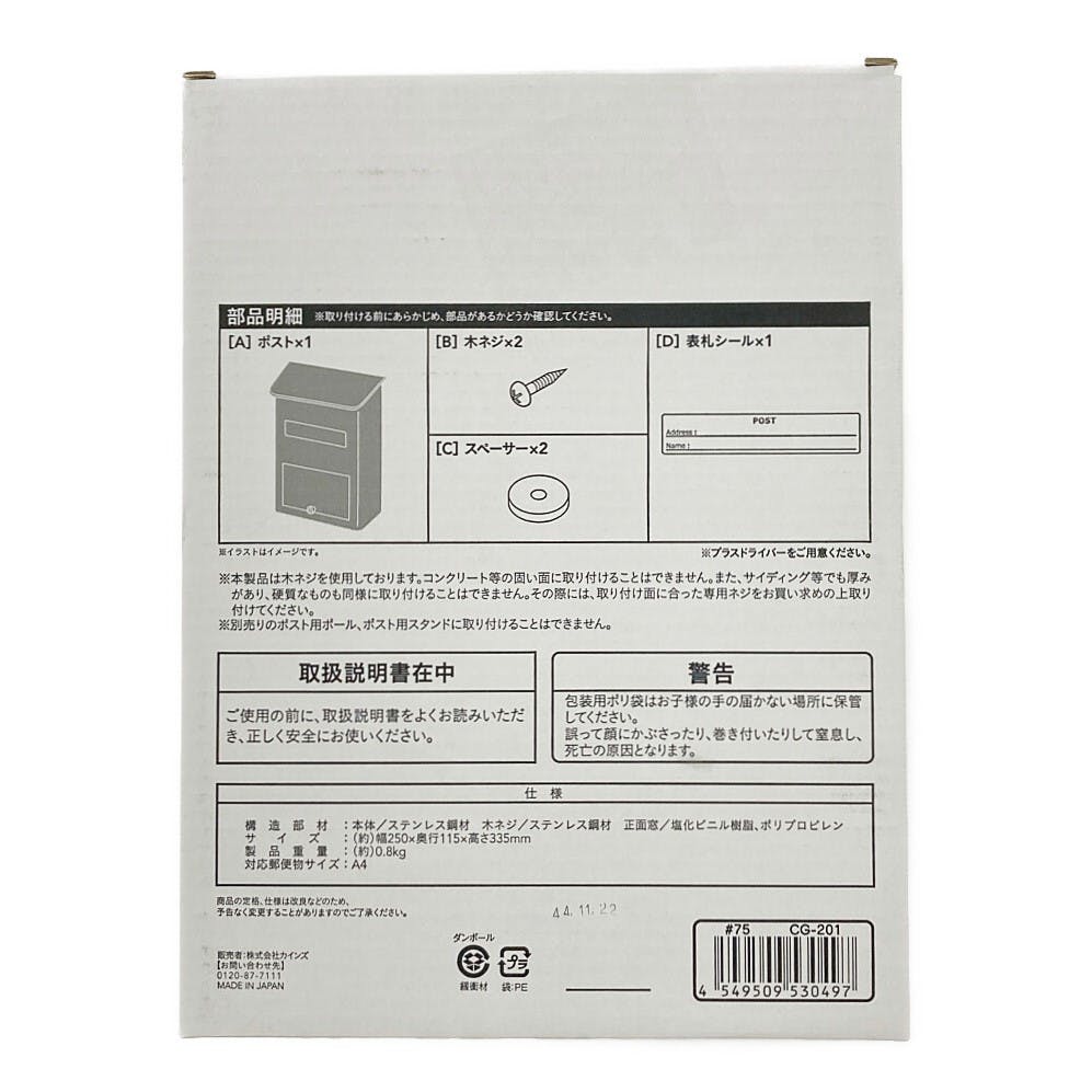 ステンレスポスト タテ型 中 シルバー CG-201 郵便ポスト 幅25cm 高さ33.5cm 奥行11.5cm