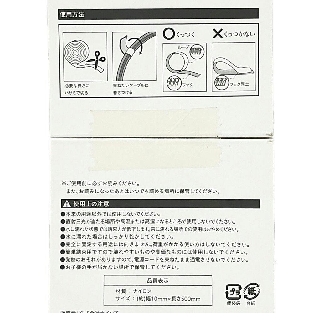 ●本来の用途以外では使用しないでください。●直射日光が当たる場所や高温または高湿になるところで使用しないでください。●水に濡れた状態では結束力が低下します。常に濡れる場所での使用はおやめください。●水に濡れた場合はしっかり乾かしてください。