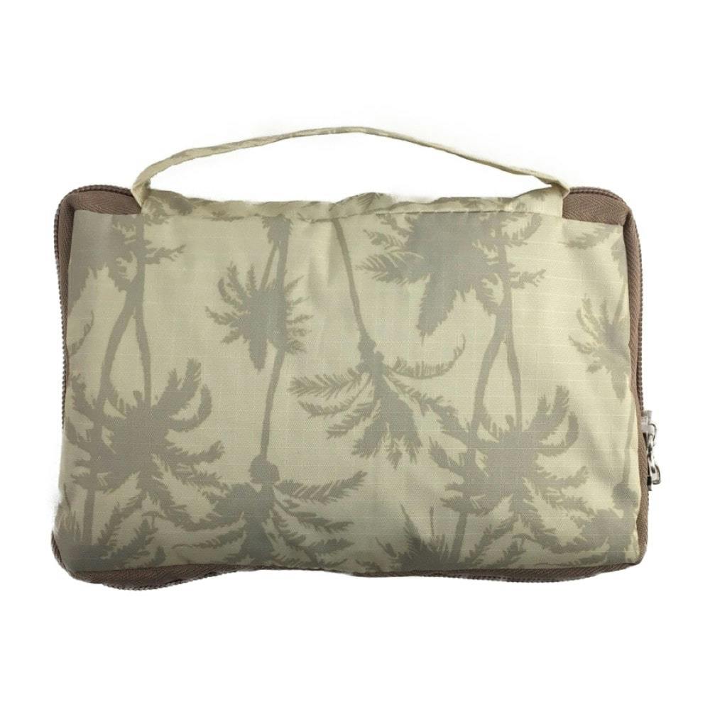 ①バッグを平らに寝かせます。②持ち手をバッグの内側に入れます。③バッグの上半分を手前に折ります。④はみ出た両端を中に入れ込み、ファスナーを閉めます。