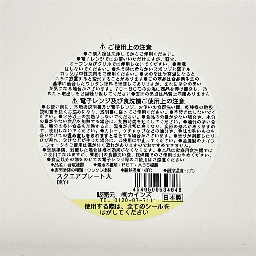 スクウエアプレート大 HAJIKU DRY+