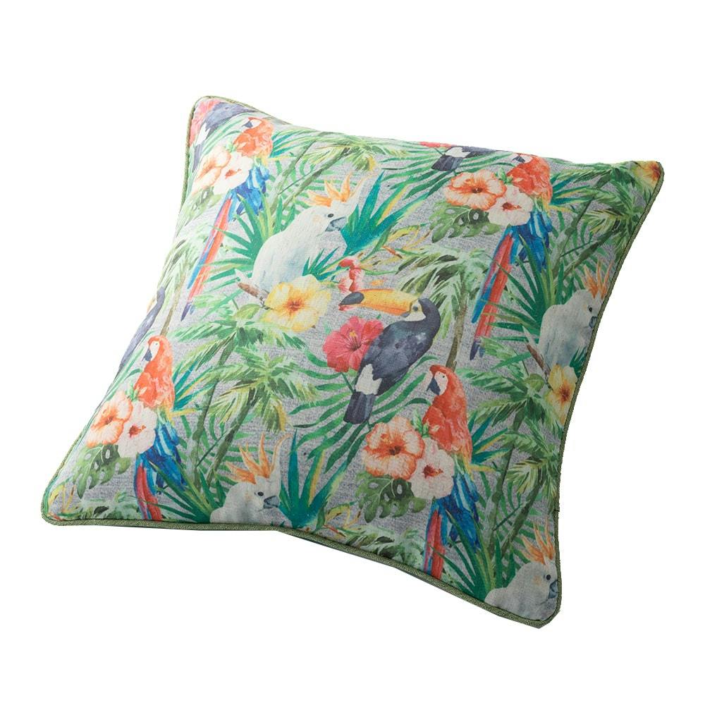 クッションカバー パストバード グレー/グリーン 45×45cm※カバーのみ