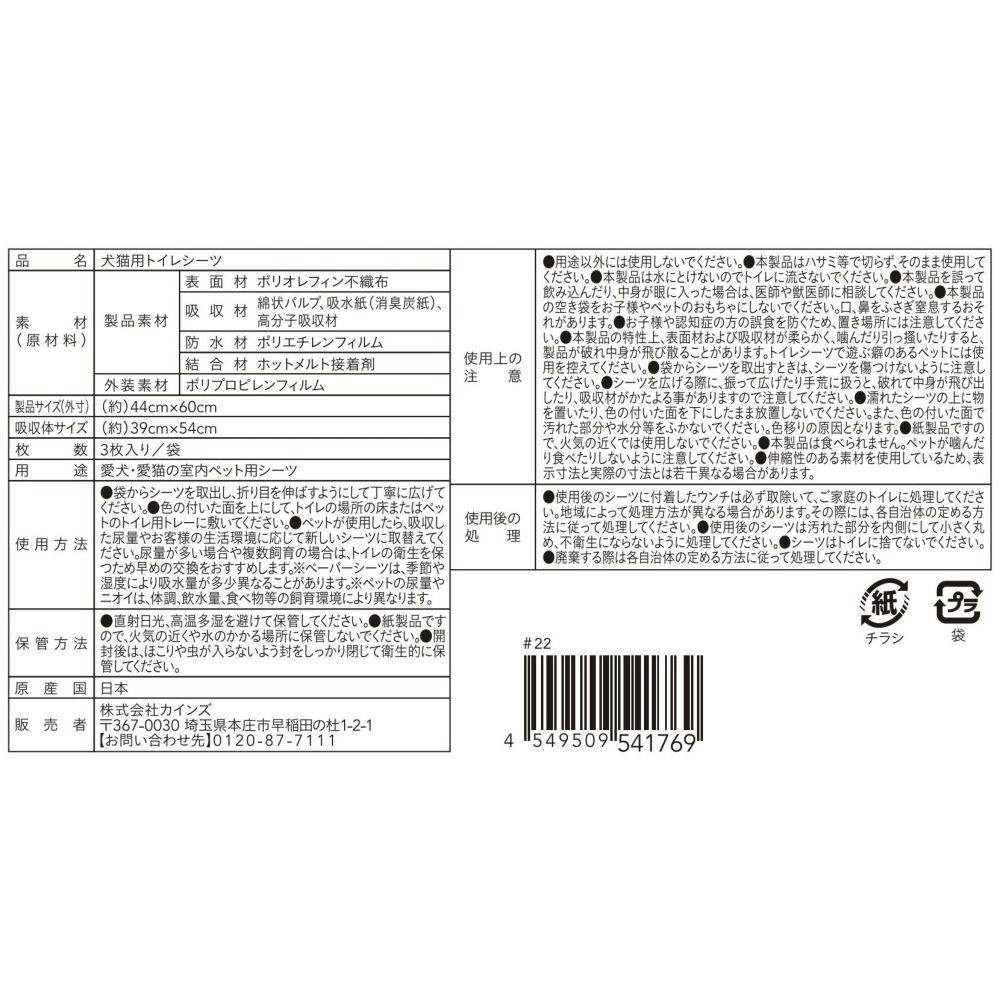 ●おしっこ4~5回分を安心吸収(小型犬の場合)。●炭入り(グレー)ティッシュがイヤなニオイを強力吸着。●2層の吸収材により、おしっこを素早く小さく吸収し、足濡れを抑え、表面さらさら。