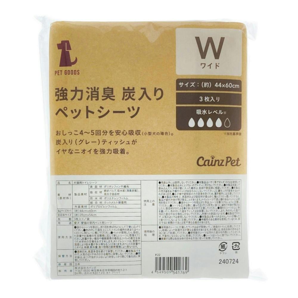 カインズ 強力消臭炭入りペットシーツ ワイド お試し3枚 犬用 中型犬約2~3回分おしっこ吸収 炭消臭 ニオイ強力吸着・消臭