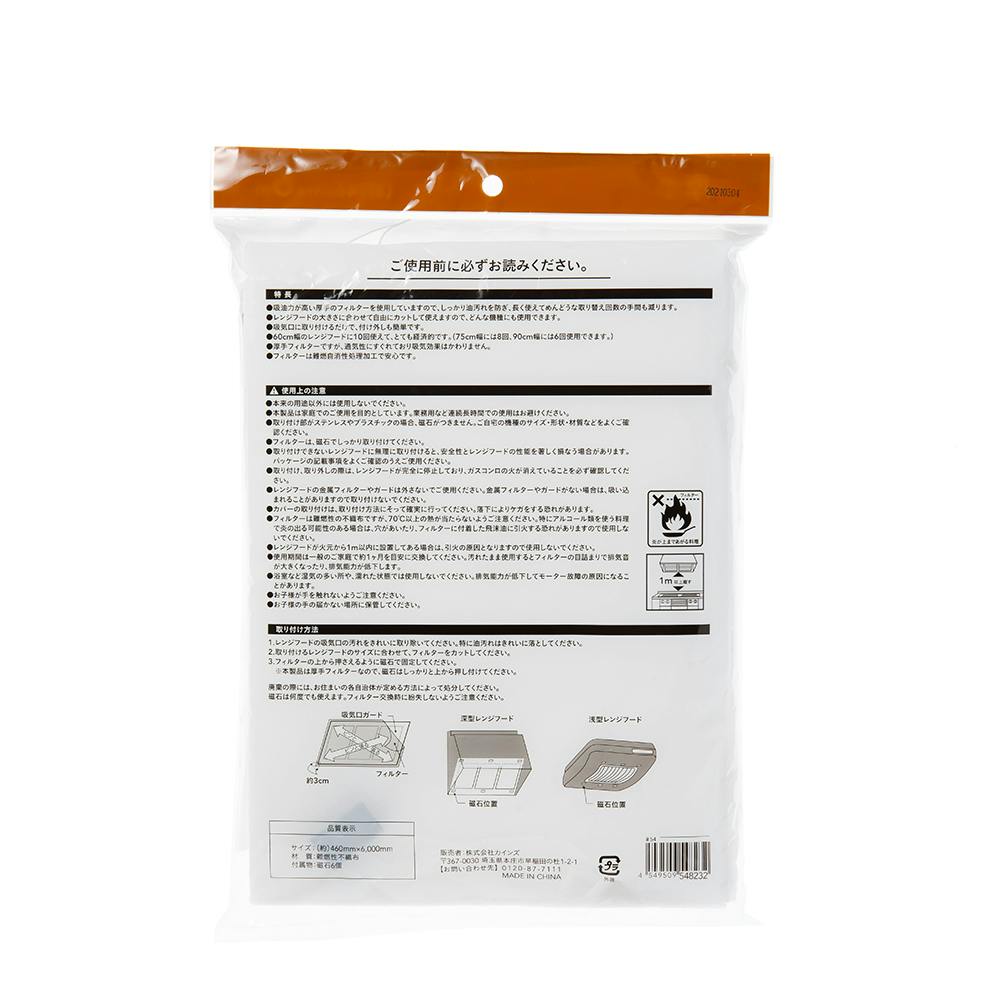 ・本来の用途以外に使用しないでください。・フィルターは難燃性の不織布ですが、70℃以上の熱が当たらないようご注意ください。特にアルコール類を使う料理で炎の出る可能性のある場合は、穴があいたり、フィルターに付着した飛沫油に引火する恐れがありますので使用しないで