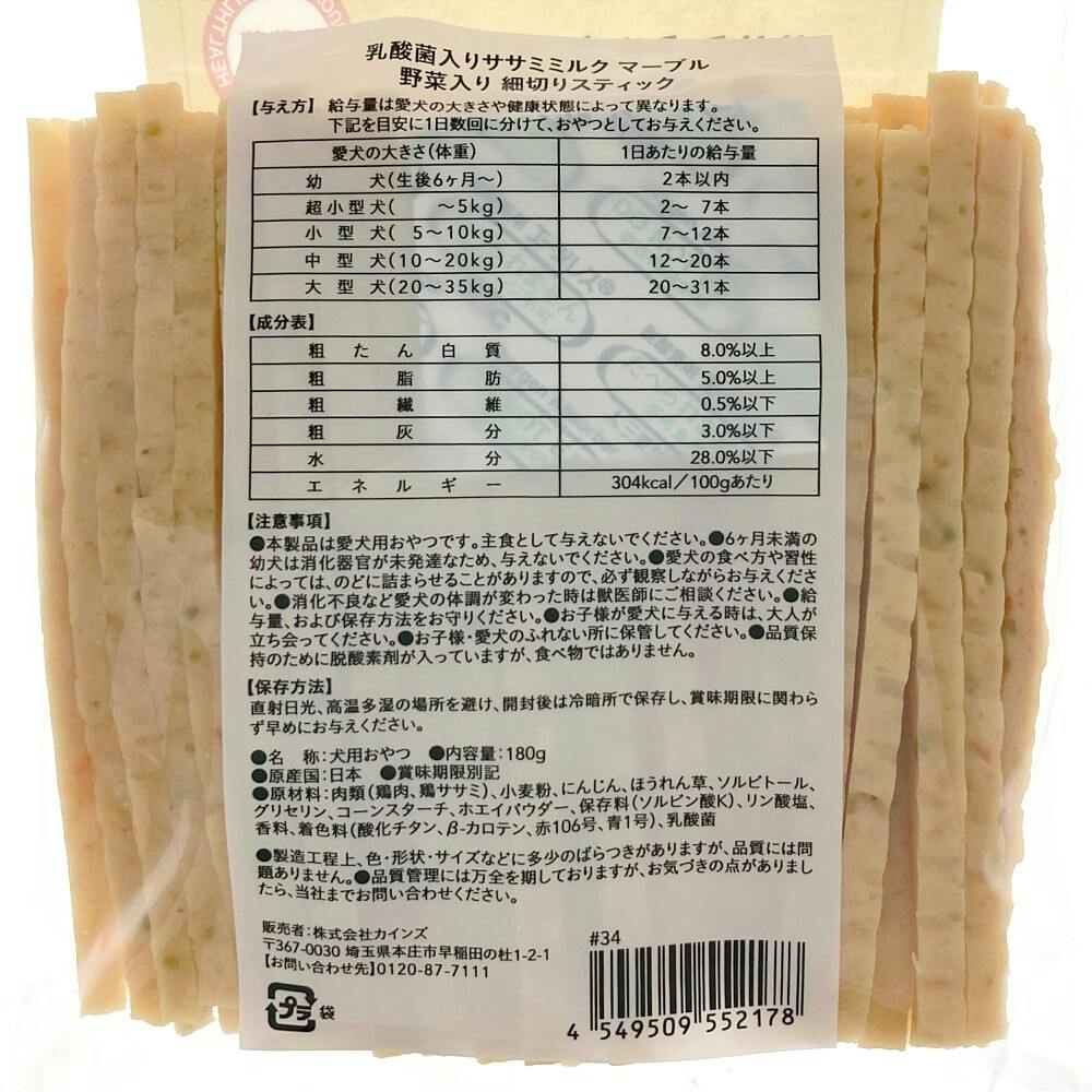 ササミ ミルク マーブル 野菜入り 細切りスティック 180g