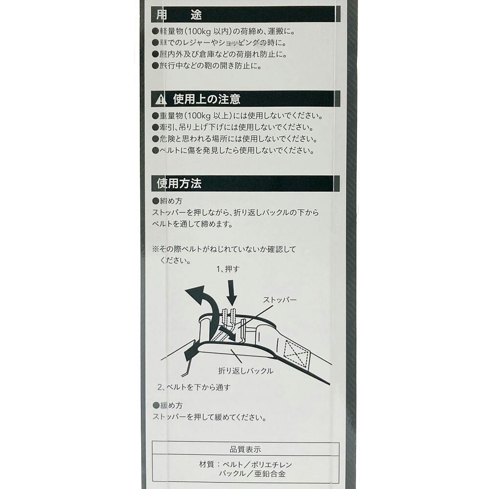 ●荷締め、結束に簡単で安全。●牽引、吊り下げには絶対に使用しないでください。