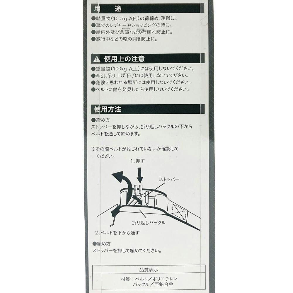 ●軽量物(100kg以内)の荷締め、運搬に。●車でのレジャーやショッピングの時に。●屋内外及び倉庫などの荷崩れ防止に。●旅行中などの鞄の開き防止に。