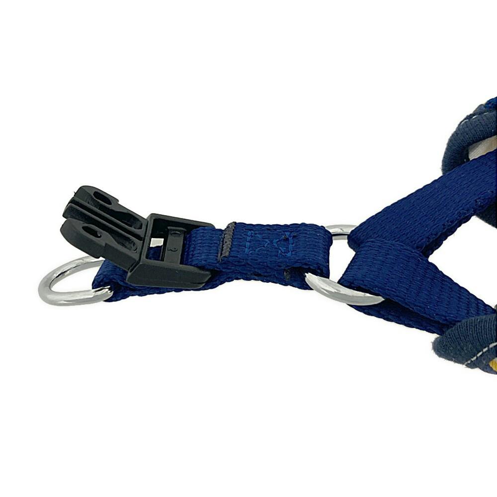 1.前足を左右に入れてください。※犬の進行方向に見て、バックルオス(ツメのある側)を左側にしてください。2.両側のDカンを持ち上げてバックルを留め、アジャスターで調整してください。引きひもは両側のDカンにつないでください。等