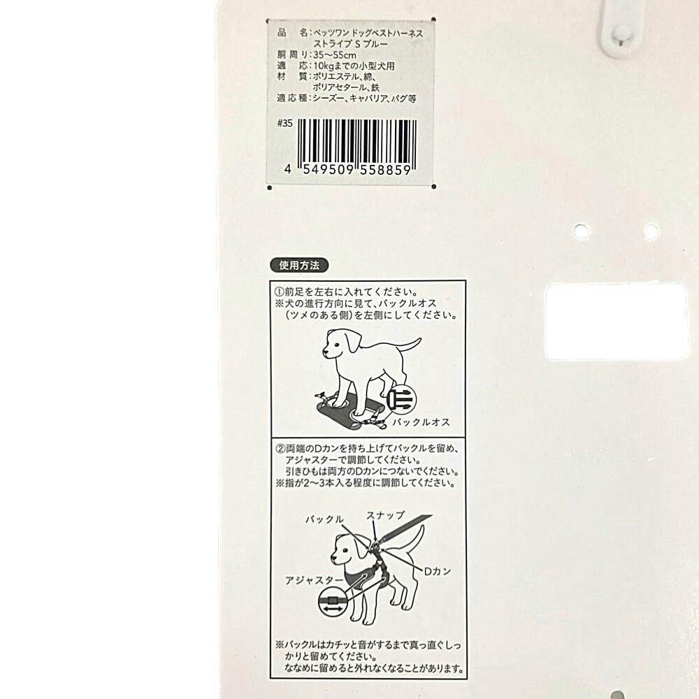 ドッグベストハーネス ストライプ ブルー S