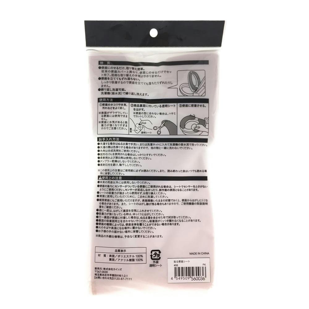 ●便座にのせるだけ、取り替え簡単。従来の便座カバーと異なり、便座にのせるだけでセット完了。面倒な取り替えの手間がかかりません。●便座を立ててもずれ落ちない。しっかり吸着するので便座を立てても落ちたりずれたりしません。●繰り返し洗濯可能。