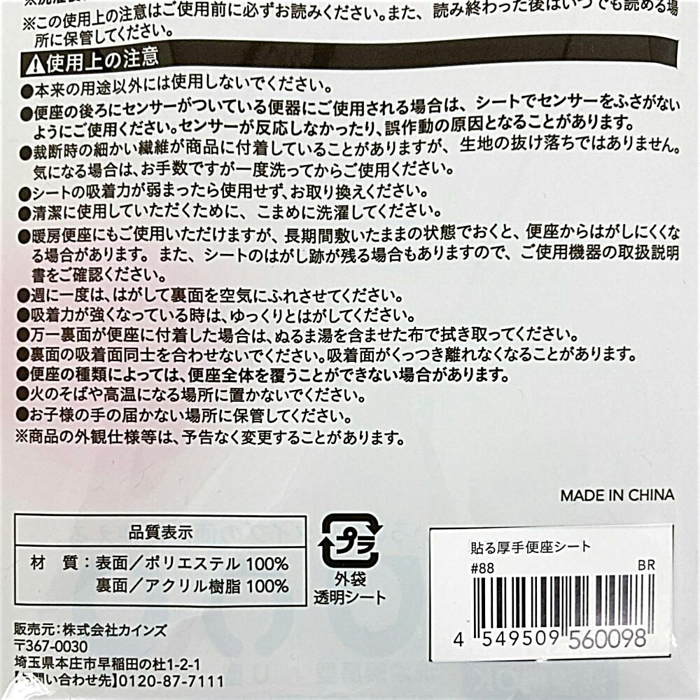 ●本来の用途以外には使用しないでください。●便座の後ろにセンサーがついている便器にご使用される場合は、シートでセンサーをふさがないようにご使用ください。センサーが反応しなかったり、誤作動の原因となることがあります。