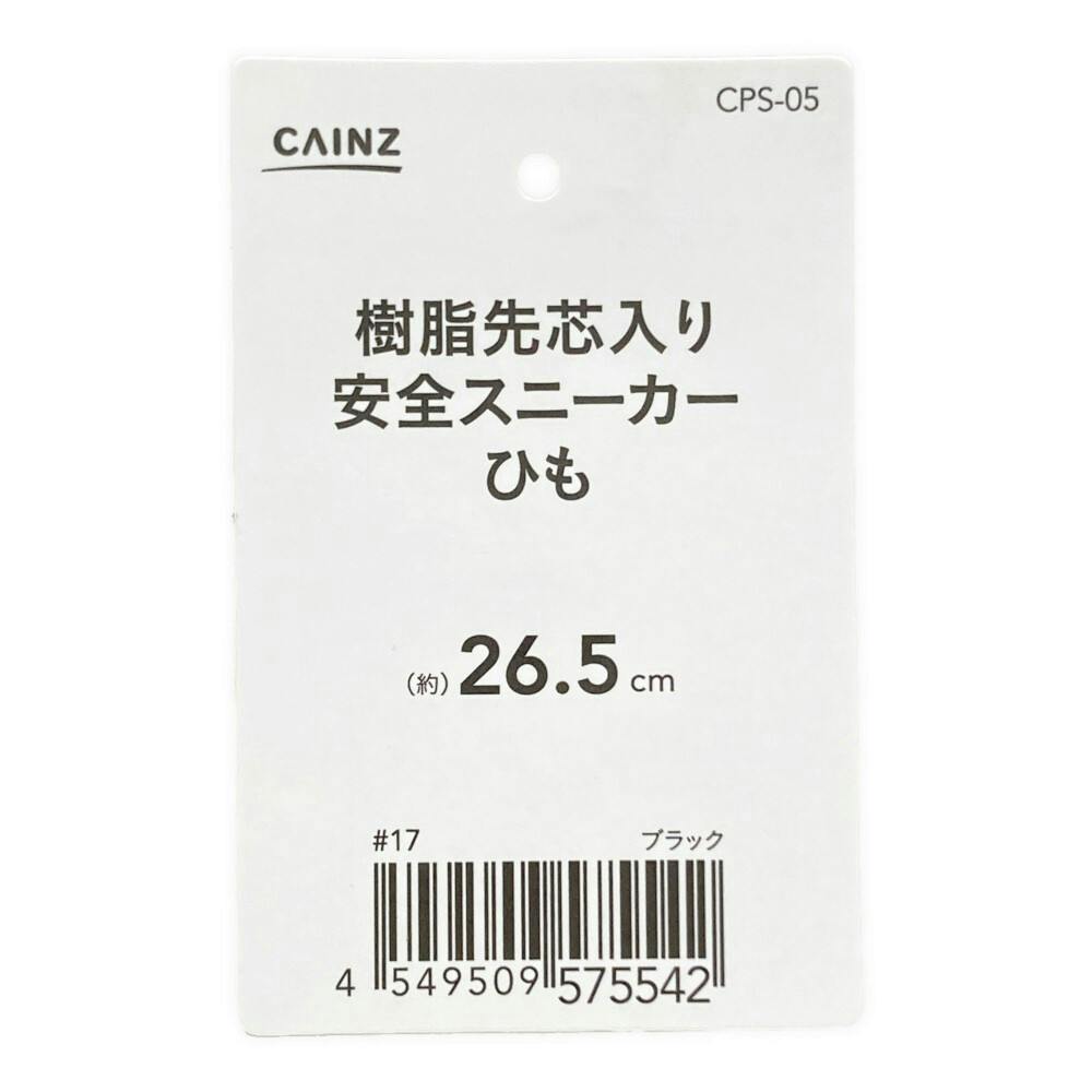 カインズ 樹脂先芯入り安全スニーカー ブラック 紐あり 26.5cm