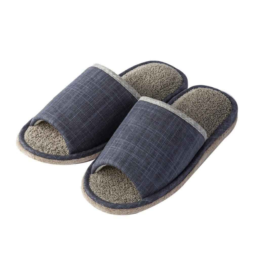 抗菌防臭 掃除もできる 麻インソール スリッパ ネイビー 25~27cm