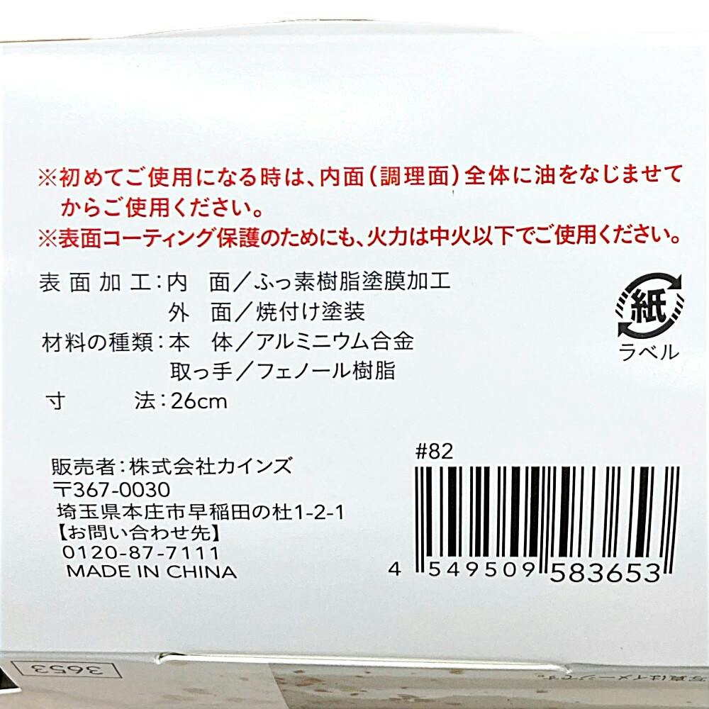 ガス火専用ふっ素コートフライパン 26cm