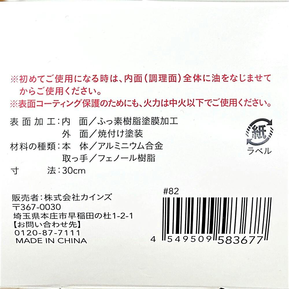 ガス火専用ふっ素コートフライパン 30cm