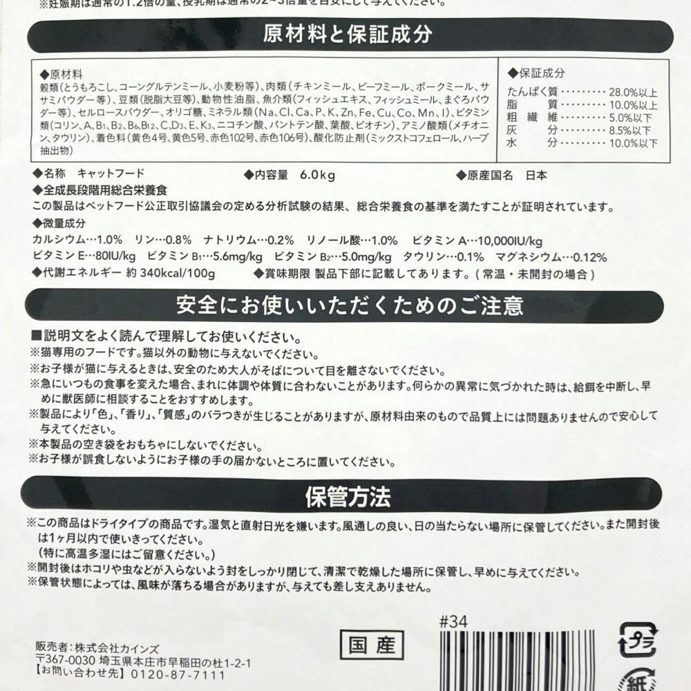 ●子猫からあげられる全成長段階用。●適量の食物繊維配合で毛玉の排出を助けます。●マグネシウムの量を調整し(標準値0.12%)下部尿路の健康維持に配慮しています。●オリゴ糖配合でお腹の健康維持に配慮しています。