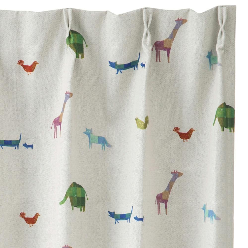 遮光カーテン アニマル アイボリー 100×135cm 2枚組