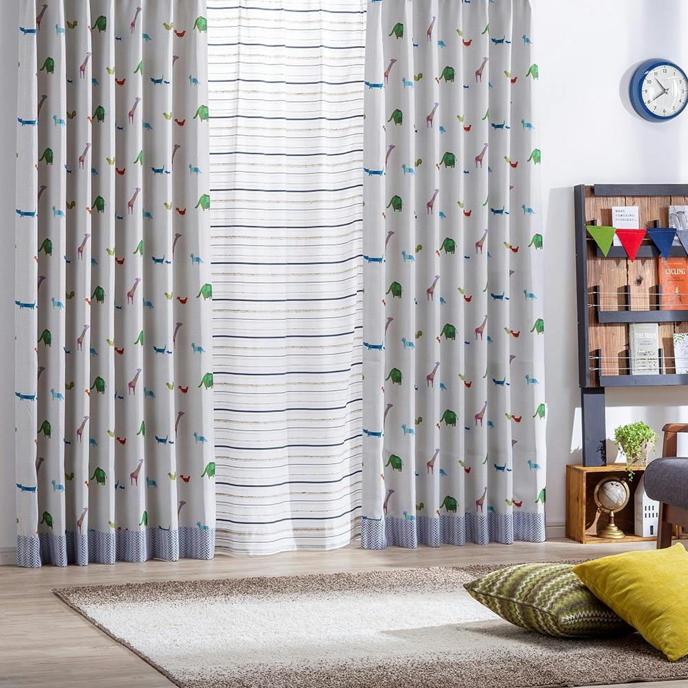 遮光カーテン アニマル アイボリー 100×210cm 2枚組