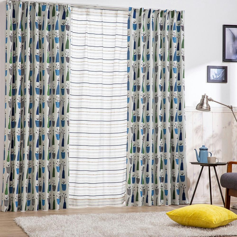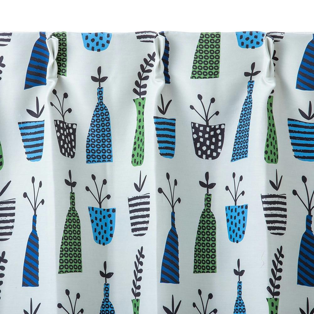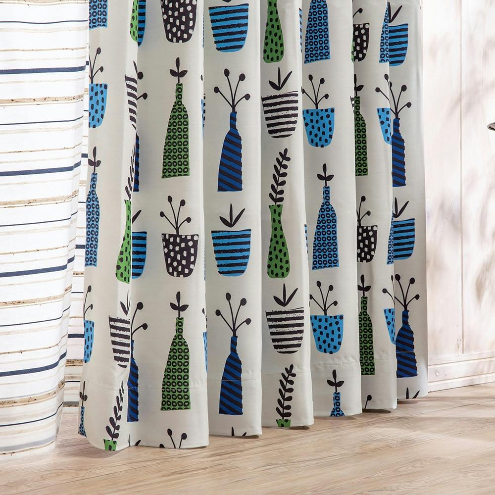 遮光カーテン ポット ブルー 100×210cm 2枚組