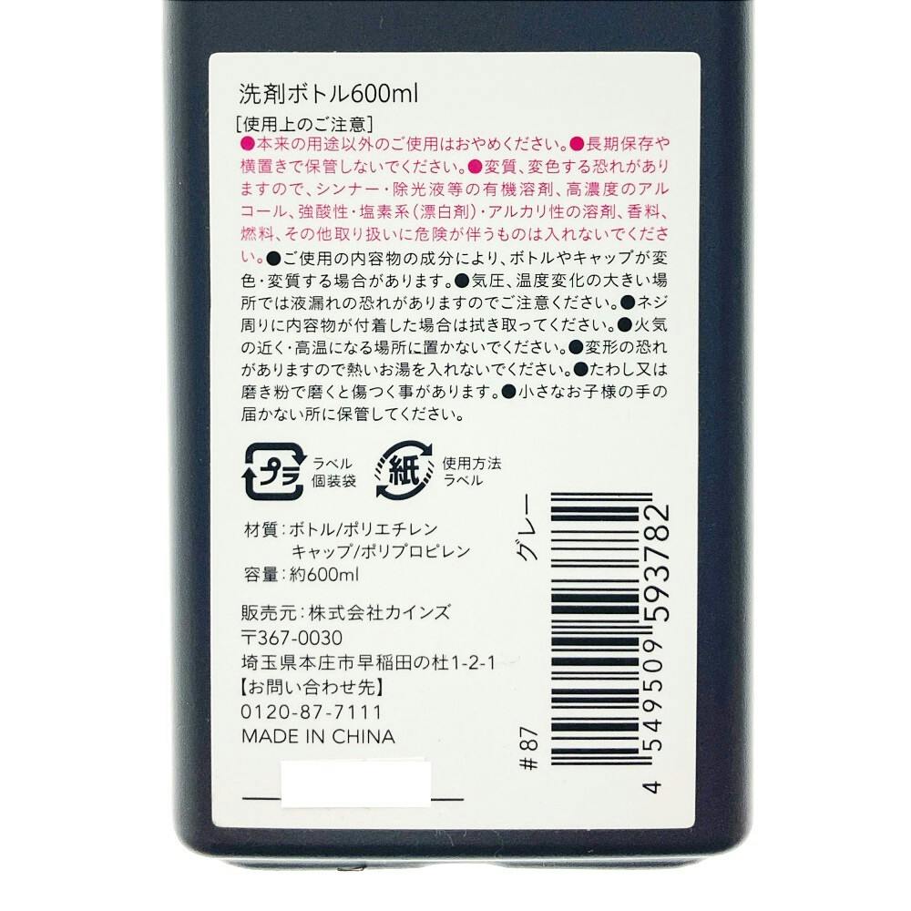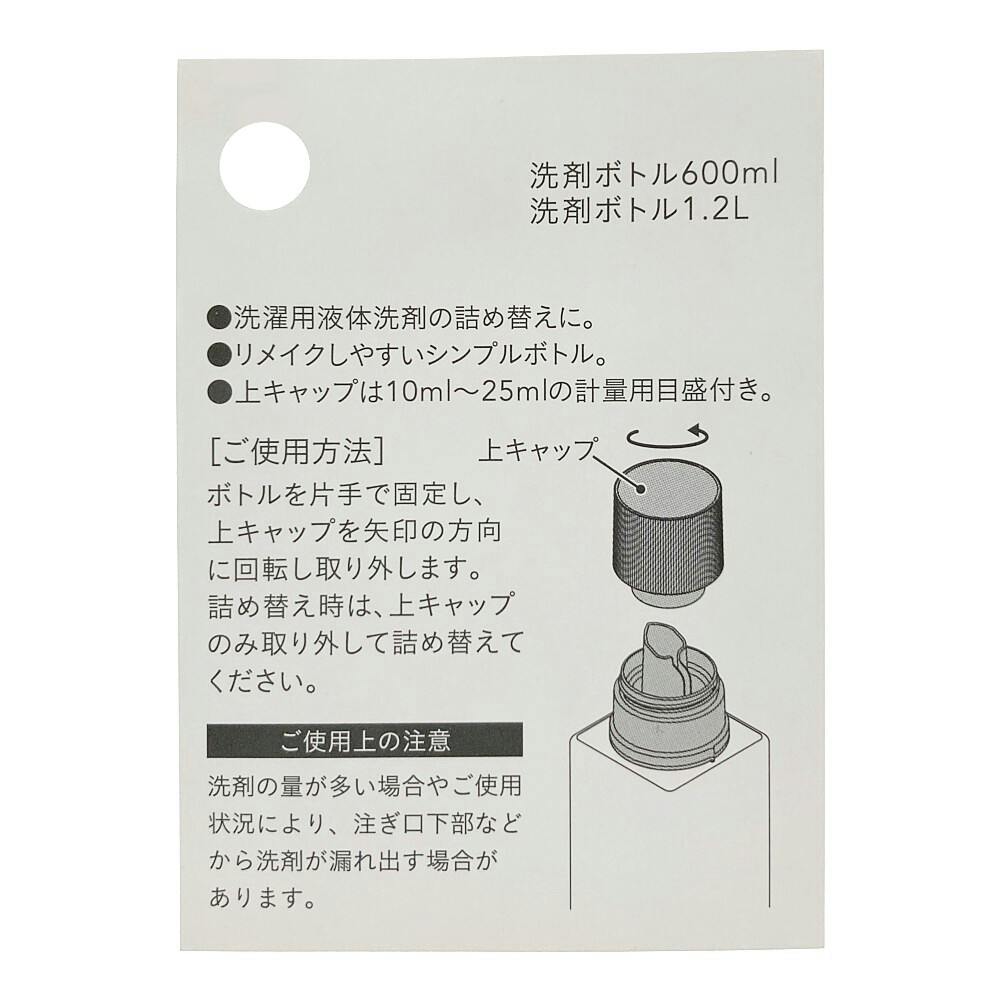 ●洗濯用液体洗剤の詰め替えに。●リメイクしやすいシンプルボトル。●上キャップは10ml~25mlの軽量目盛付き。●底面にある凹みで、ぬめりがつきにくい。●持ちやすい形状。
