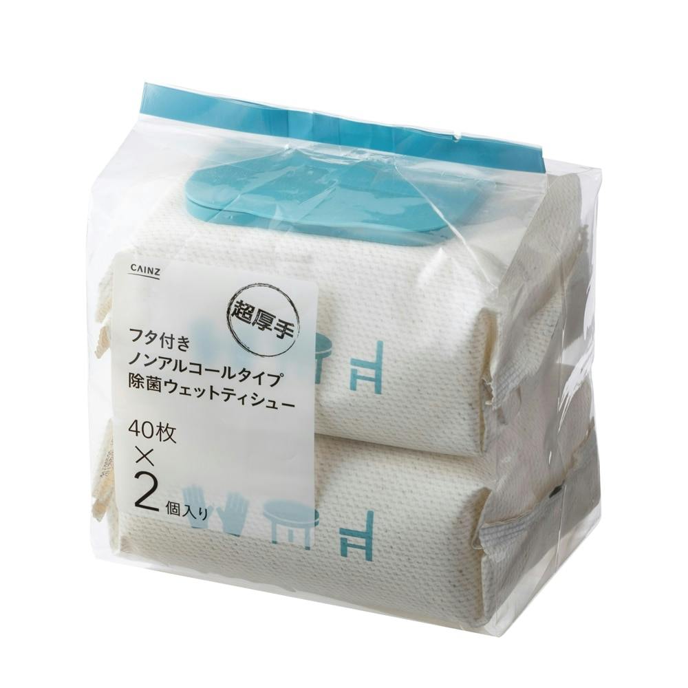 カインズ フタ付き ノンアルコールタイプ 除菌ウェットティシュー 超厚手 40枚×2個 (販売終了)